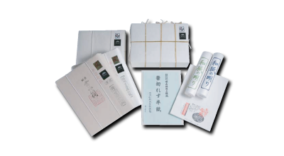 The name hanshi (half-size paper) derives from the fact that sheets of washi made by cutting the basic handmade washi (48.48 cm x 33.33 cm) into half (24.24 cm x 33.33 cm) were used for calligraphy. Hanshi made of Inshu Washi is generally renowned for its fine and smooth texture.